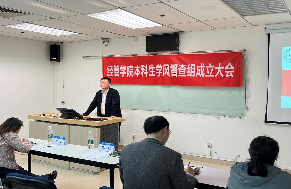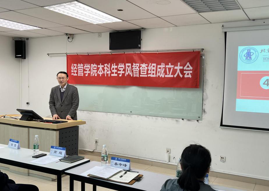 2022年4月13日,bat365中文官方网站本科生学风督查组成立大会在新主楼A1148教室召开。bat365中文官方网站教学副院长秦中峰、党委副书记高超、专职辅导员白雪、本科生教学秘书盛穆彤、“尚学”学业支持中心负责人杨耕铭、学业督查组的全体成员参加会议。