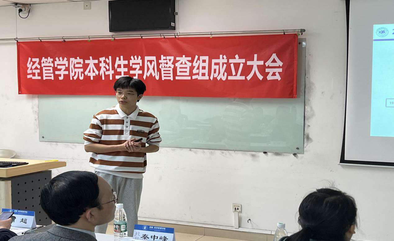 “尚学”学业支持中心负责人杨耕铭详细介绍了本科生学风督查组的建设目标、组织架构及工作计划。杨耕铭提到,“学风督查组”的工作目标主要包括两个方面,一是抓好课堂效果,提高同学们的上课出勤率、抬头率,提高同学们课堂上的学习效果,保证学生们的学业质量;二是提高课堂质量,通过学风督查组的旁听和收集学生们的上课效果反馈,给课堂教学模式提供建设性建议,帮助同学们上更高质量的课。