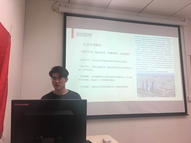 随后,董明睿同志围绕着《习近平总书记在纪念五四运动100周年大会上的讲话》分享了自己学习心得,在讲话中,习近平总书记说道,五四运动以全民族的力量高举起爱国主义的伟大旗帜,以全民族的行动激发了追求真理、追求进步的伟大觉醒,以全民族的搏击培育了永久奋斗的伟大传统。习近平总书记还对广大青年提出了六个要求,即新时代中国青年要树立远大理想,要热爱伟大祖国,要担当时代责任,要勇于砥砺奋斗,要练就过硬本领,要锤炼品德修为。董明睿同志表示,自己刚刚有过海外交换的经历,所以更加懂得青年对于祖国发展的重要意义,身在海外的中国青年,应牢记祖国的需要、人民的利益。在完成学业后,应将自己的所学所得贡献到祖国建设现代化强国的事业中,在实现个人价值的同时,为祖国、为人类社会做出更大贡献。同时我们身为青年大学生,身为学生党员,应该三省吾身,练就本领,把握时机。
