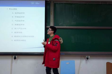 第四位是本科为金融学专业的郭一鸣同学,郭同学首先为学生介绍了一些曾经学过的课程,接着,他结合实际去鼓励大家明确兴趣,认真听课,独立修行,开拓视野。他的个人感悟为学生提供了很大的帮助。