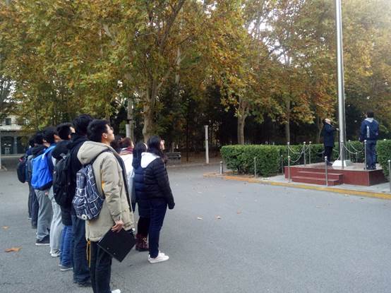 2018年11月6日至10日,bat365中文官方网站16级本科生在学院路校区主楼前按行政班依次开展升旗仪式,每班有一名同学代表发表国旗下讲话。