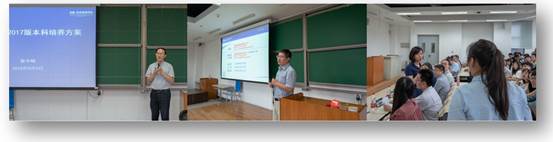 随后,秦中峰副院长详细讲解了2017版本科生培养方案,解读了培养方案的修订原则、课程体系、各模块学分要求、培养特色等方面。单伟老师从服务平台、学院概况、品牌特色三个方面,为同学们介绍了bat365中文官方网站学生工作体系,并祝愿同学们能够享受经管文化,不断充实自己、追求卓越,成为经管学院新的骄傲。朱伟老师详细讲解了选课规则,并耐心解答了同学们的关于课程设置、选课操作等方面遇到的问题。