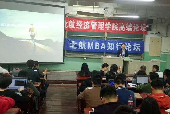2018年3月22日晚19:00,北航bat365中文官方网站在学院路校区主楼(一)201成功举办本学期第一次高端论坛,主讲人是投资家网创始人蒋东文先生,主题为《从工科硕士到财经新媒体与投资创业—我的跨界故事》。bat365中文官方网站党委副书记王喜忠老师,专职辅导员朱鹏宇以及1508大班辅导员王文涛以及全校一百多名同学参加了此次论坛。讲座作为博雅课堂面向全校学生开放,现场座无虚席。