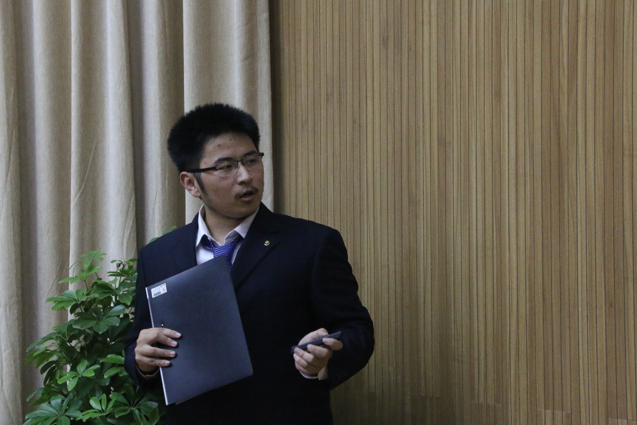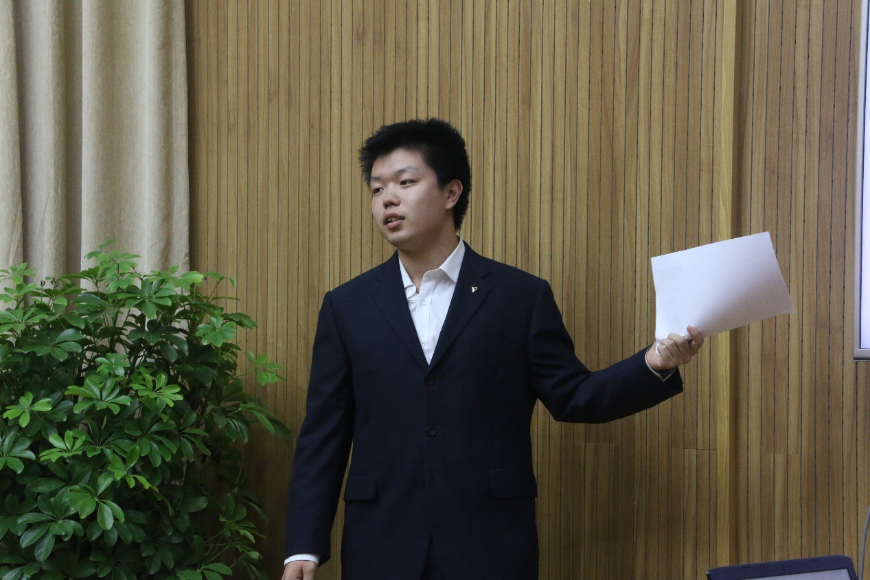 第二位答辩者为组织部部长韩鹏飞,他首先简短介绍了过去一年的各类工作,并决心在未来的工作中从自身做起,积极促进对外交流和团结协作。