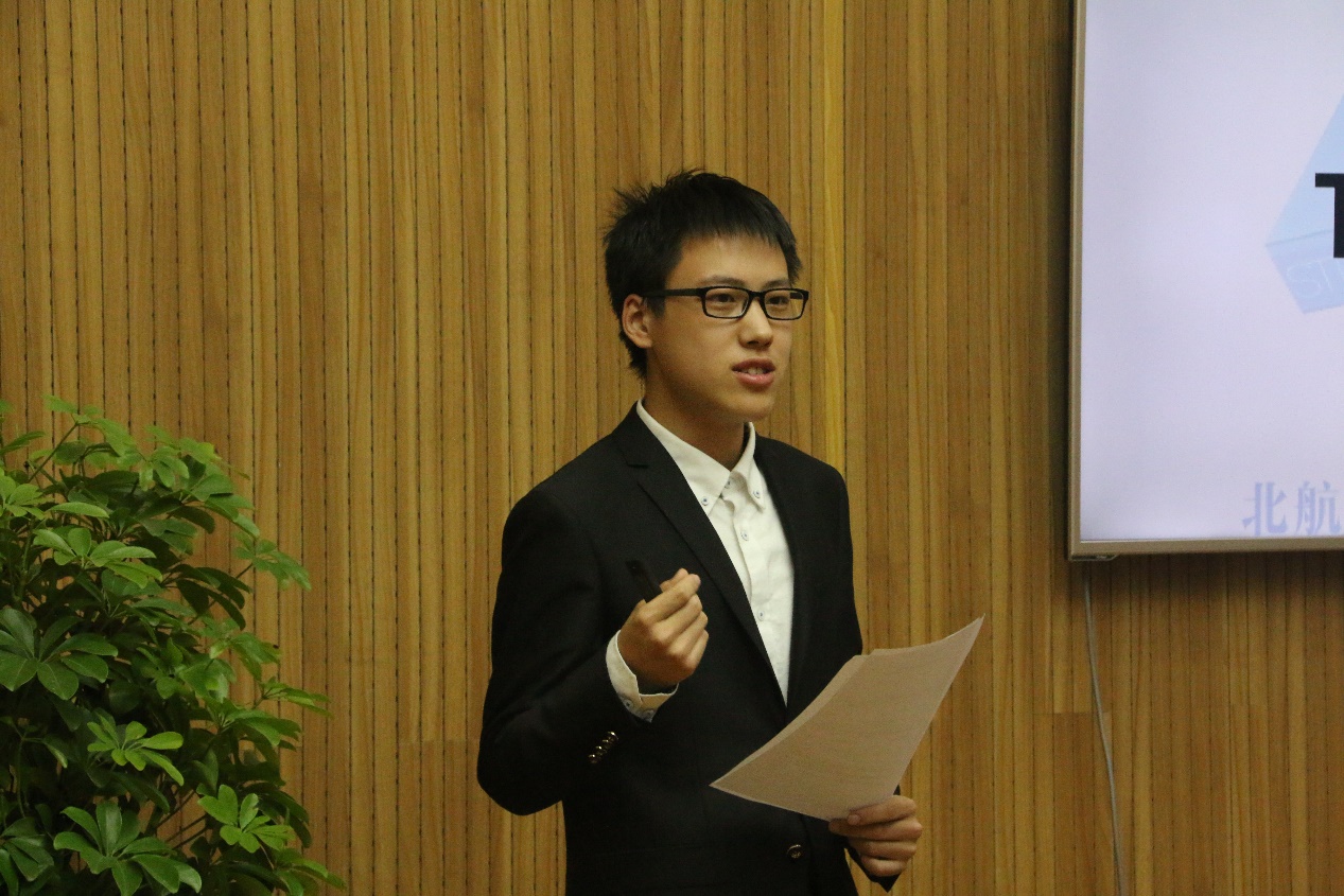 第四位参与答辩的是传媒部代理部长刘毅,他首先介绍了传媒部在这一年里所完成的任务和达成的目标,并希望自己当选后能够加强对任务质量的管理、提高对传媒部和新闻中心的要求、培养干事们的创意,并搭建北航两校区的桥梁。