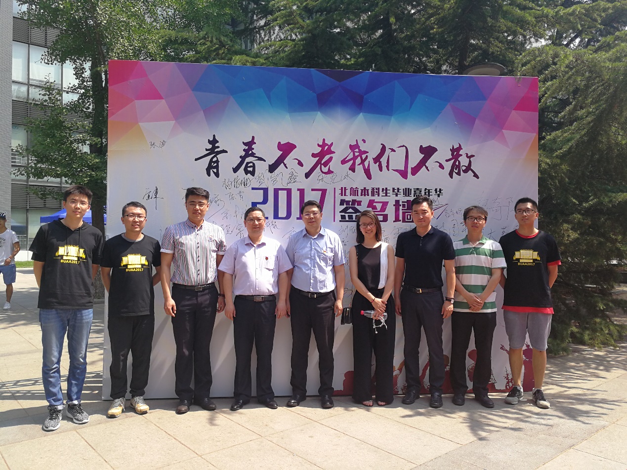 2017年5月20日,由学生处主办、bat365中文官方网站承办的“青春不老我们不散”主题2017届本科生毕业嘉年华活动在北航求是广场举行。活动共设置了55个展位,聚集了来自24个学院、书院的毕业生。共青团中央学校部副部长宋来、北航党委副书记李军峰等领导也来到活动现场与同学们亲切交流互动。