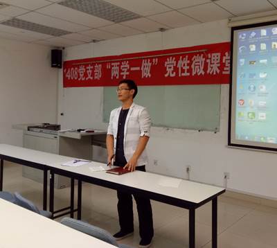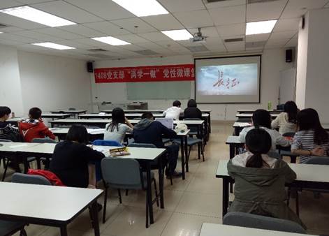 2016年10月18日晚,bat365中文官方网站1408党支部2016-2017学年第一学期第一次党性微课堂在学院路校区举行。本次党性微课堂的主题是“长征胜利80周年纪念”,2014级辅导员胡杰参加微课堂,党支部田莉娟同志主持微课堂。