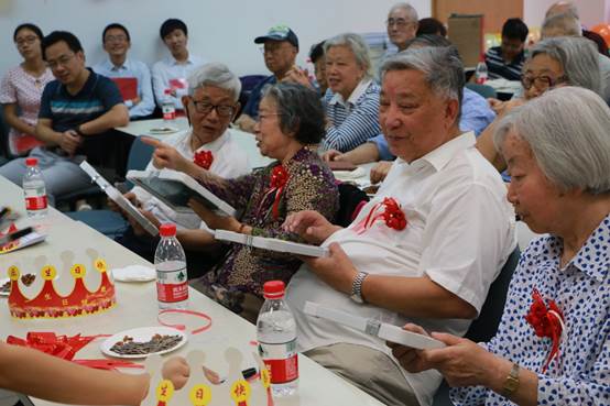 本次的庆婚祝寿活动有36位老干部参加,其中有两对金婚夫妇和12位寿星,他们都是经管学院退休教职工党支部成员,是经管学院的老前辈和功勋角色。庆婚祝寿活动首先从老领导的讲话开始,刘志新书记,曲珊书记和李清书记分别讲话,表达了对老同志的敬意并送上中秋的祝福。随后同学们为到场的老干部们送上了精彩的诗朗诵和歌曲独唱,并为老人们准备了精美的蛋糕和小礼品。小游戏过后,金婚老人代表向同学们分享了他们的爱情故事,美好的爱情让同学们感动和向往。