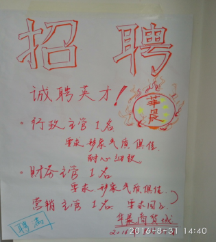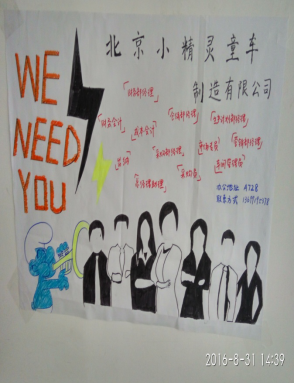 第一天下午分组,共3个房间(A703、A713、A728),分布着4个制造企业、2个供应商、2个客户、外围服务中心等,并各自招聘员工,制作海报、开始组建自己的团队。