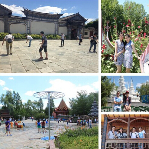 6月7日早上9点,3个年级共17个博士和2名博士家属参加了此次出游。前夜大雨洗涤后的北京,给了我们澄澈绚美的蓝天。在参观民族村寨时,我们欣赏和参与傣族的泼水节,观看了苗寨的上刀山表演活动,获得中华民族独具特色的文化艺术享受。共同出游促进了彼此的交流和沟通。“文化为科技插上想象的翅膀”,文化的积淀和充满智慧的想象,推动科学的发展,有利于更好的学术创作。