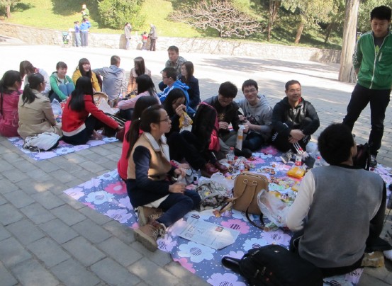 中午12点,走累的小伙伴们开始野餐了,漂亮的餐布、种类繁多的零食、甜心的糖果,引起了大家的阵阵欢呼!众多的帅哥美女围成两个大圆圈,共同分享。经过短暂的休整,大家陆续玩起了游戏,谁是卧底、乌龙、杀人游戏等等,引起一波又一波的爆笑。