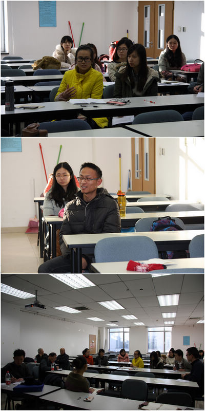 会上,老师与同学们围坐成一个圈,大家畅所欲言,进行了充分的交流与意见互换,会场气氛热烈而活跃。第一届助老小组的负责人陈彬彬同学和第二届负责人赵传斌同学首先进行了发言。经过一年的摸索与实践,陈彬彬同学总结了一年多来的活动成果及经验,指出了工作中遇到的问题,并对新一届助老小组提出了建设性的意见。赵传斌同学阐述了新一届助老小组工作计划,想法。希望借由本次会议老教师和同学们可以多加沟通,充分交流,使同学们可以尽量多的了解老教师的需求与想法。