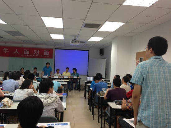 在六位牛人学长分享了各自的成功经验后,本次分享会进入提问交流环节,大三的同学就自己感兴趣的方向有针对性的向各位学长进行提问,大家踊跃发言,各位学长都细心回答了同学们的疑问,大家都觉得受益匪浅。