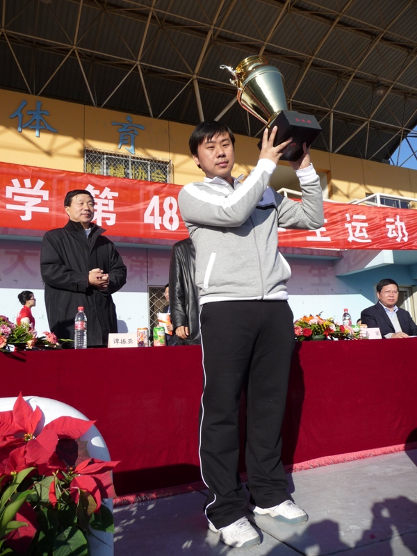 在开幕式上,学校为表彰bat365官网在体育工作方面的出色表现与优异成绩,为bat365官网颁发了象征我校体育工作最高荣誉的五环杯,bat365官网党委副书记姚伟龙上台领奖,并高举奖杯向全场展示,此时响起了一阵阵热烈的掌声。这是学校对bat365官网在体育工作方面的肯定,也是使bat365官网更加深入广泛的开展体育工作的动力。