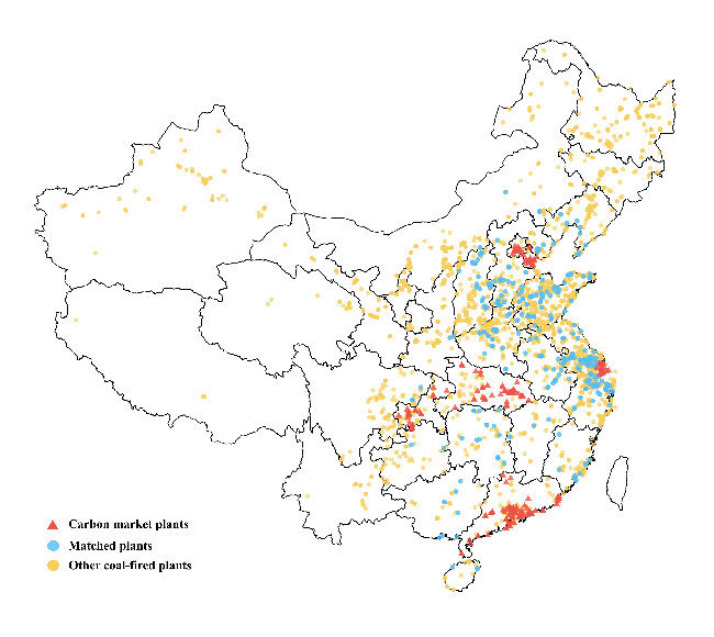 该研究使用全国电厂微观数据,以参与碳排放交易试点的燃煤电厂为处理组,非试点省份的燃煤电厂为控制组,通过双重差分模型来分析碳排放交易试点政策对于电厂煤炭消费和电力生产的影响。碳市场参与企业主要是试点省份内煤炭消耗量大和二氧化碳排放量高的企业,为了提高处理组与控制组电厂之间的可比性,该研究根据电厂在碳市场试点政策实施前的煤炭消费量,将处理组电厂与控制组电厂中煤炭消费量最为接近的电厂匹配。虽然通过匹配能够构造出更为平衡的控制组,但是处理组与控制组位于不同省份,很可能存在与碳市场试点政策相平行的干扰因素。为此该研究使用一般化的合成控制法,通过加入交互固定效应进一步控制相关干扰因素。