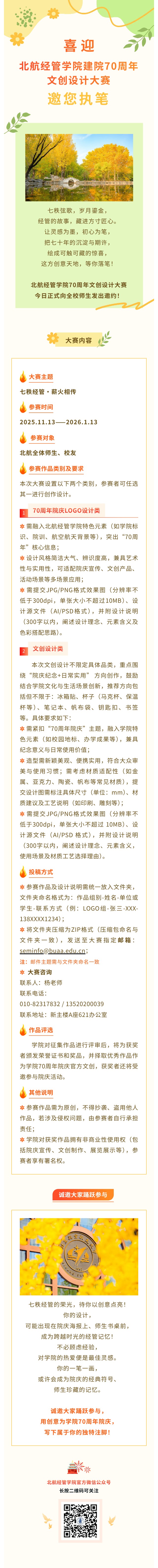 喜迎北航经管学院建院70周年——文创设计大赛邀您执笔