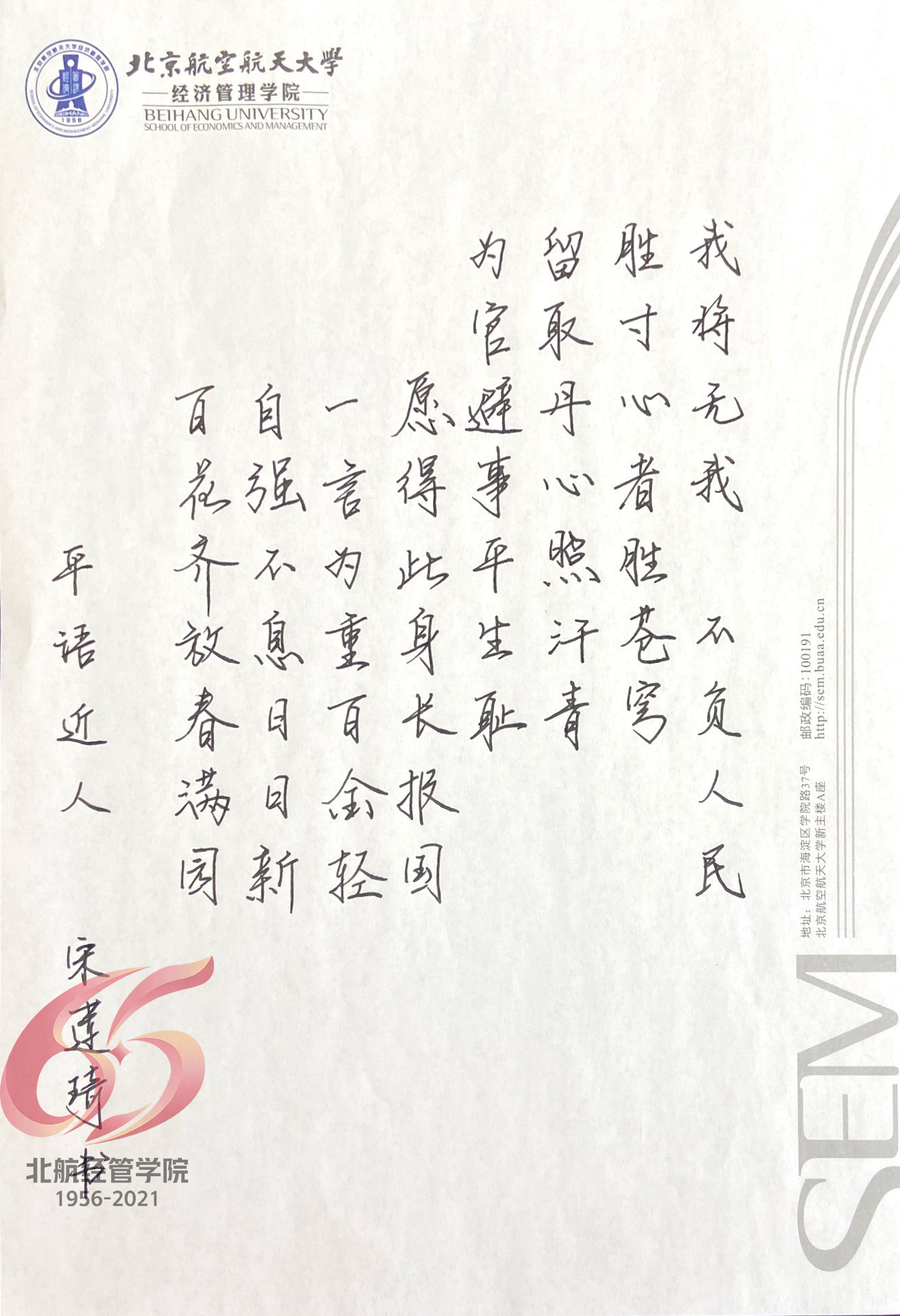 为进一步深入学习领会习近平总书记最新重要讲话、文章、谈话中所引用古代典籍和经典名句折射出的内涵和文化价值,生动展现学院师生对中华优秀传统文化和习近平新时代中国特色社会主义思想的理解与诠释,北航bat365中文官方网站面向学院全体师生开展“平语近人”书法和海报设计大赛。大赛自4月启动以来共收到60余幅投稿作品,32幅作品入围评选。(海报设计作品由于投稿数量较少,该类别不组织评选)。经网络票选和专家评议,现将评选结果公布如下。