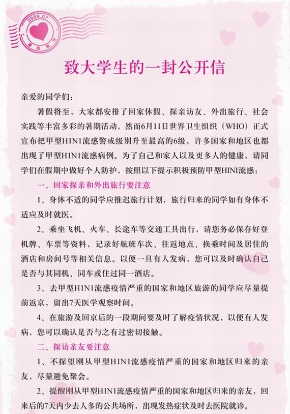 防控甲型H1N1流感——“致大学生的一封公开信”