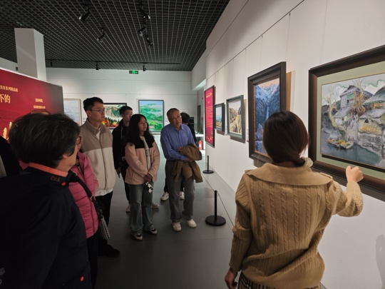 参观过程中,经管学院关工委老教师们与同学们进行了热烈交流。老教师们结合自身经历,分享了对艺术与文化的深刻理解,结合画作和专业特色讲解经管专业知识,进一步加深了同学们对于学院的归属感和文化认同感。鼓励同学们在专业学习之余多参加艺术展览,提升审美素养,培养综合素质。