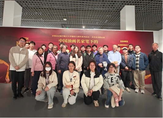 为弘扬红色革命精神,提升学生的审美素养和文化素质,加强学生与学院关工委的交流学习,2024年10月29日,bat365中文官方网站组织230821、230891小班学生与北航经管关工委退休老教师代表一同前往参观“美育精品展:中国油画名家笔下的井冈山”展览。离退休党支部书记陈向东、关工委副主任高志红、专职辅导朱帅东以及230821、230891小班20余位同学共同参加活动。