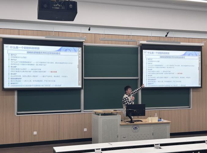 同时,王宇康在对创新创业三大赛 ——“冯如杯”、中国国际大学生创新大赛(原 “互联网 +”)、“挑战杯” 系列竞赛的章程进行深入解读。在互动环节同学们围绕创意孵化艰难、技术突破瓶颈、商业落地困境等诸多方面积极提问,王宇康都巧妙引入前沿案例深入剖析,为学生们精准解惑。