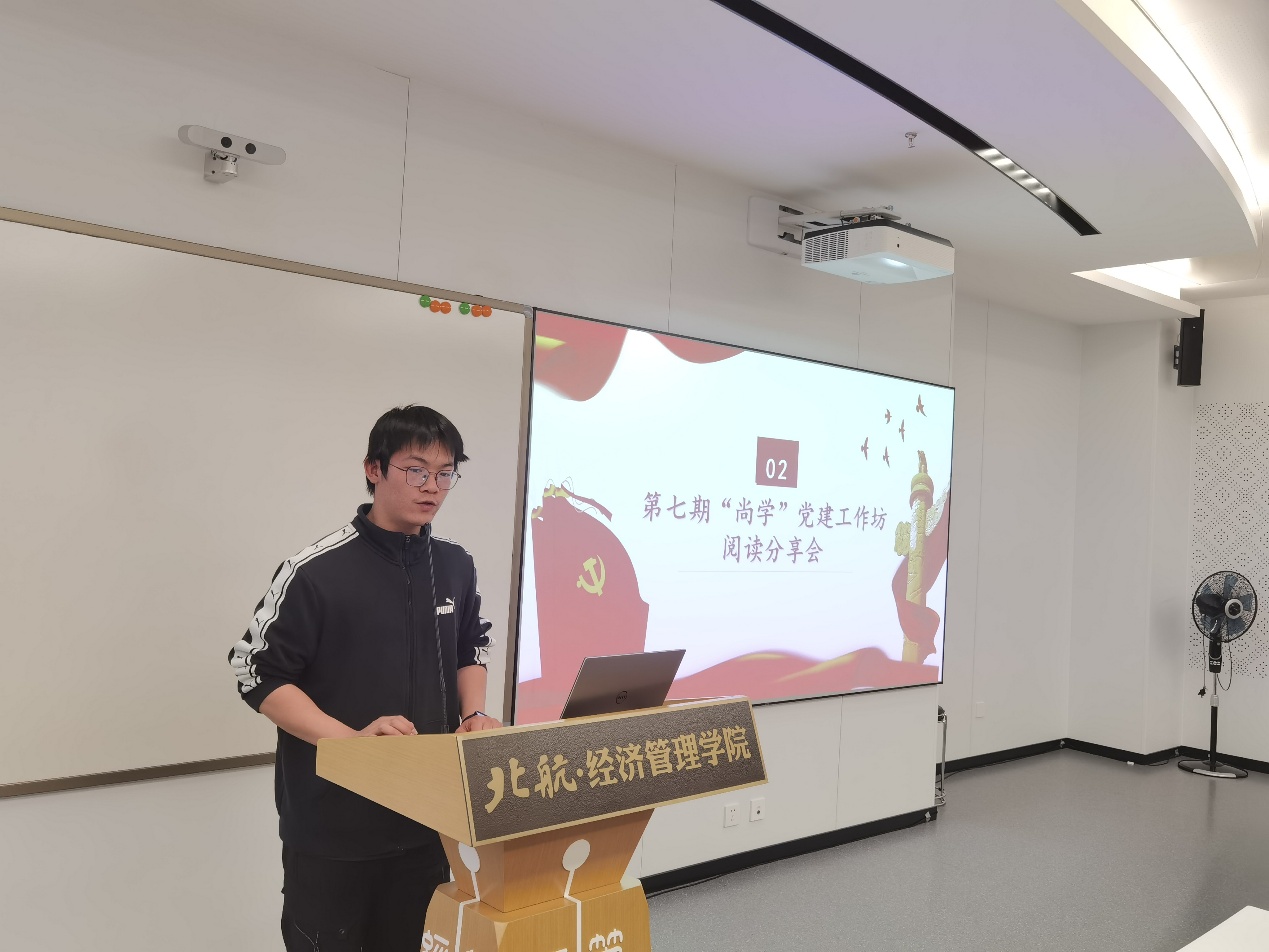 为深入学习贯彻习近平新时代中国特色社会主义思想,认真学习党的二十届四中全会精神,引导工作坊学员坚定理想信念、厚植家国情怀,11月30日下午,“尚学”党建工作坊于新主楼A618举行阅读分享会暨翻转课堂。本次活动将经典阅读与互动研讨深度融合,组织学员在品读原著中领悟思想伟力,在研讨实践中锤炼党性修养,让理论学习更具感染力与实效性。党课由bat365中文官方网站兼职辅导员郑昊哲主持。