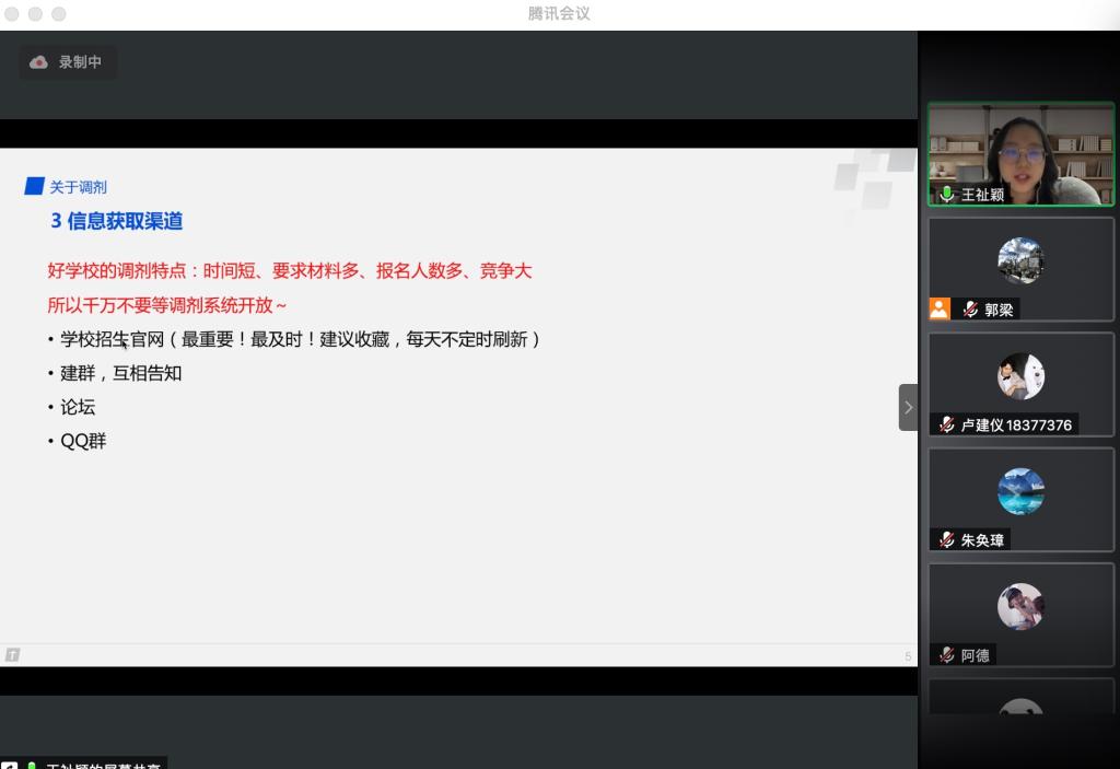 初试成绩公布后,学院第一时间调研了解学生复试安排和需求,有针对性地开展工作。3月7日,学院召开“考研调剂及复试经验分享”专题分享会,邀请王祉颖、赖新贵、党志源、许裕汕、马千里等五位往届考研成绩优秀的毕业生为同学们做经验分享。学长学姐们从自己考研经历出发,对调剂准备、信息获取渠道、复试流程及注意事项等方面进行分享。在交流环节中,学长学姐们耐心解答了同学的诸多疑惑。通过此次经验分享会,同学们对考研复试和调剂有了更加全面的认识。