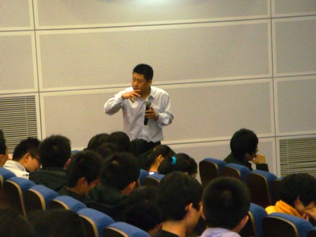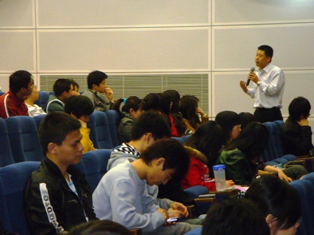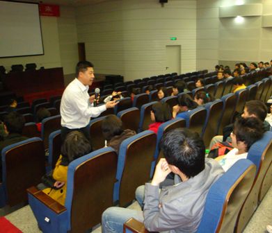为切实解决此问题,3708大班联合3808大班在经管学院职业发展中心的支持下,于2009年3月16日19点在新主第二报告厅举行主题为:“起点北航 目瞻未来——与社会成功人士零距离交流”联合大班会,邀请倍腾企业顾问公司资深顾问、《输赢》作者付遥;风险投资Origo副总裁李腾飞;威海荣成大业海珍品有限公司董事总经理杨志军;张国立胞弟、著名导演张国宁分别就“成功学及自我激励”、“职业发展规划”、“从就业到创业”、“生活是最好的大学”四个主题进行近4个小时的交流并现场回答同学提问。