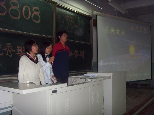 在答辩过程中,各个班级展示的精美的PPT,悠扬的音乐伴奏,清晰的活动策划,妙语连珠的答辩,让各个评委都感受到了08级新生的风采。首先的PPT展示让评委及同学们对各小班的活动中心思想,目的,活动过程有了一个大致的了解,而之后进行的答辩环节让评委及观众对活动的内容有所了解。