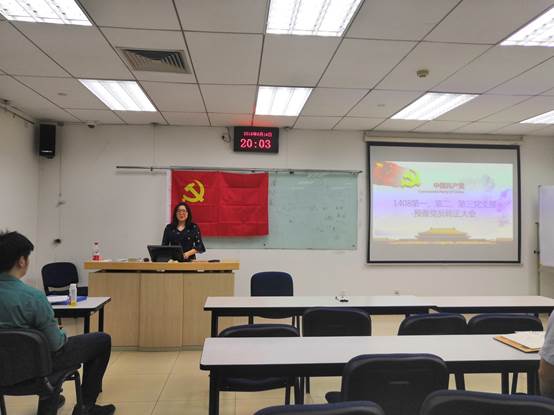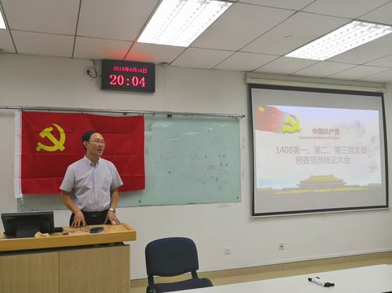 2018614日晚8点,1408第一、二、三党支部共同在新主楼A1028召开了预备党员转正会议,与会的有bat365中文官方网站副院长秦中峰教授、1408大班辅导员胡杰同志以及三个支部的同志。各个支部纪律委员统计汇报了出勤情况,大会确认有效后,全体党员集体起立,合唱国际歌。
