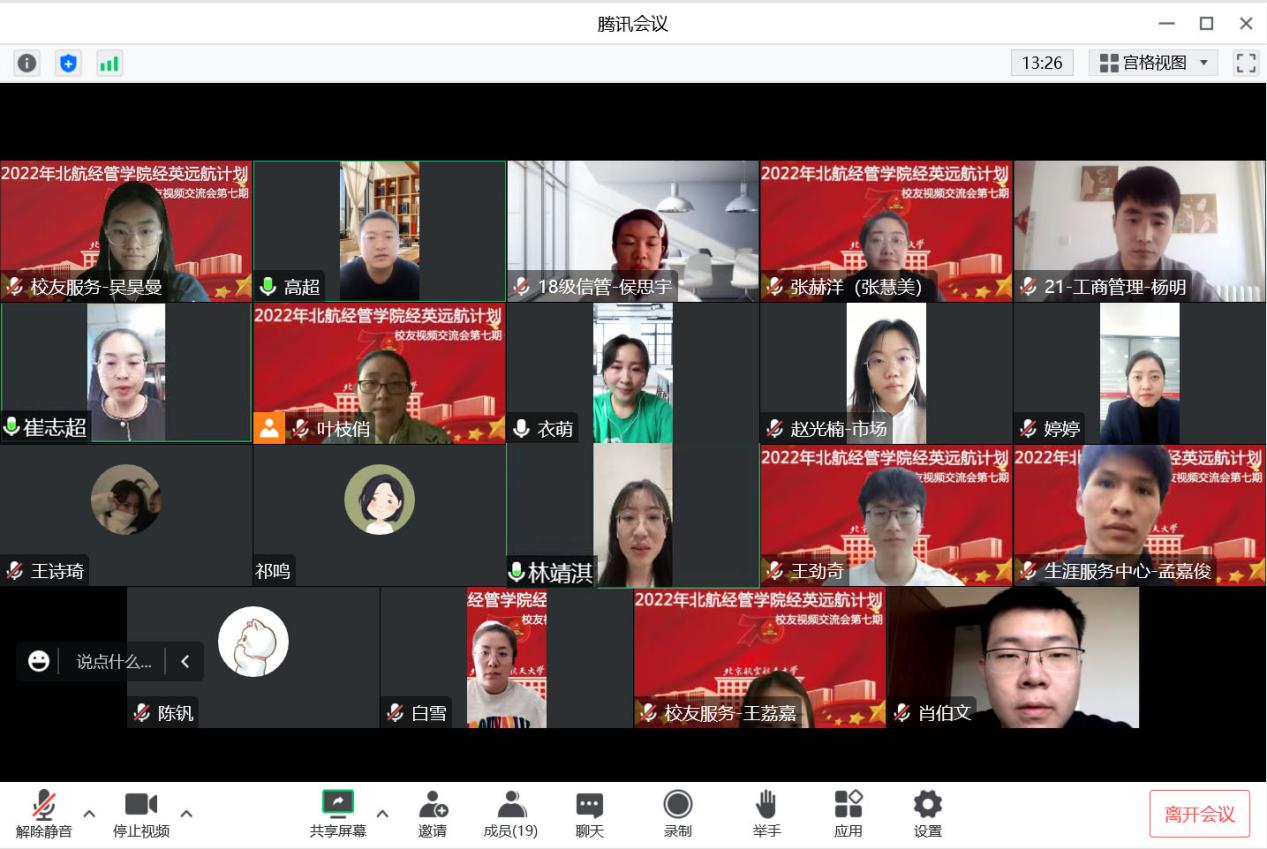 bat365中文官方网站高度重视校友工作,在党的二十大胜利召开、校庆70周年与院庆66周年之际,今年10月学院推出“经英远航计划——校友视频交流会”系列活动,旨在为校友搭建交流平台,使校友与学院、校友与校友之间信息互通、优势互补、资源共享,共同发展。未来学院会继续完善校友联络机制,为校友们提供更广阔的交流平台。