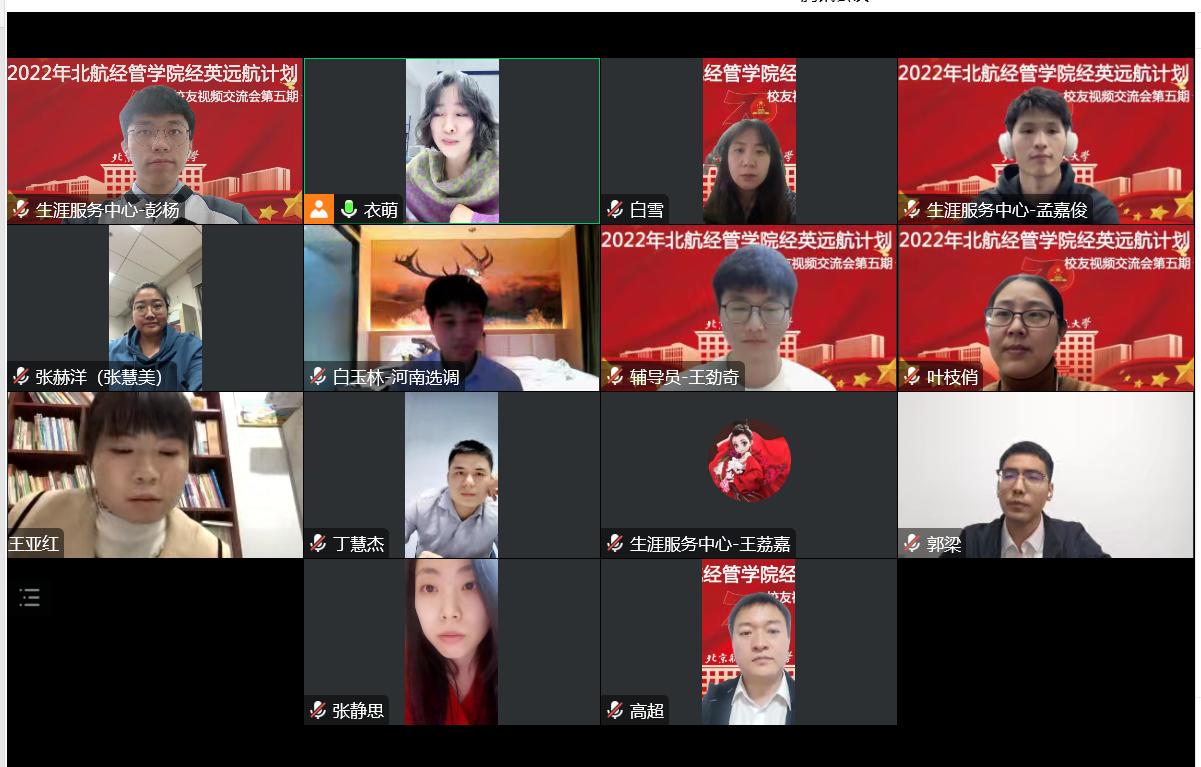 bat365中文官方网站高度重视校友工作,在党的二十大胜利召开、校庆七十周年与院庆六十六周年之际,今年10月学院推出“经英远航计划——校友视频交流会”系列活动,旨在为校友搭建交流平台,让校友与学院、校友与校友之间信息互通、优势互补、资源共享。未来学院会继续完善校友工作机制,为校友们提供更广阔的交流平台。