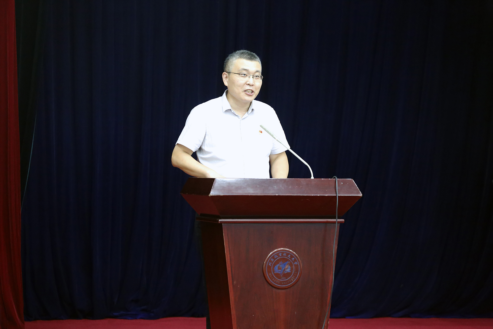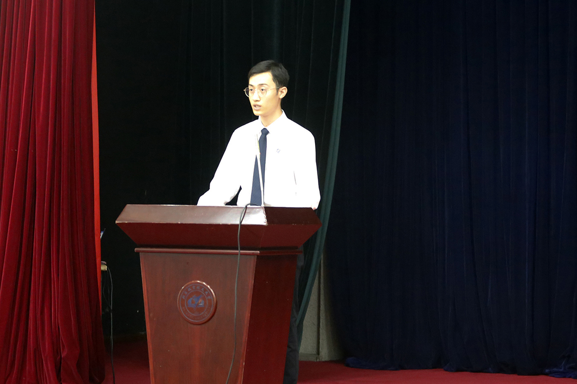研究生导师代表刘天亮教授代表全体教师为新生送上了真挚的祝福与殷切的期许。刘天亮教授通过生动幽默的语言讲述了科研的艰辛过程,希望新生们树立远大的理想信念,做好社会的建设者和接班人,不畏艰难,勇于挑战,再创新高!