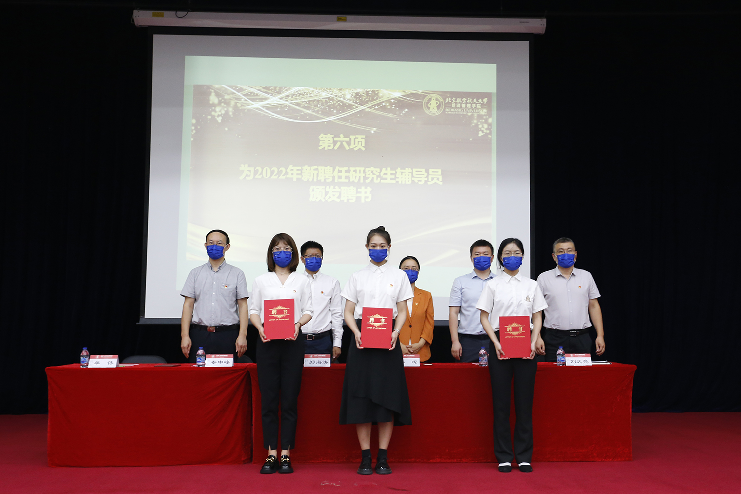 学院党委副书记高超老师宣读2022年新聘任研究生辅导员名单,与会老师为新聘任研究生辅导员颁发聘书,期望各位辅导员同志在未来的学习与工作中,做学生的人生导师和知心朋友。