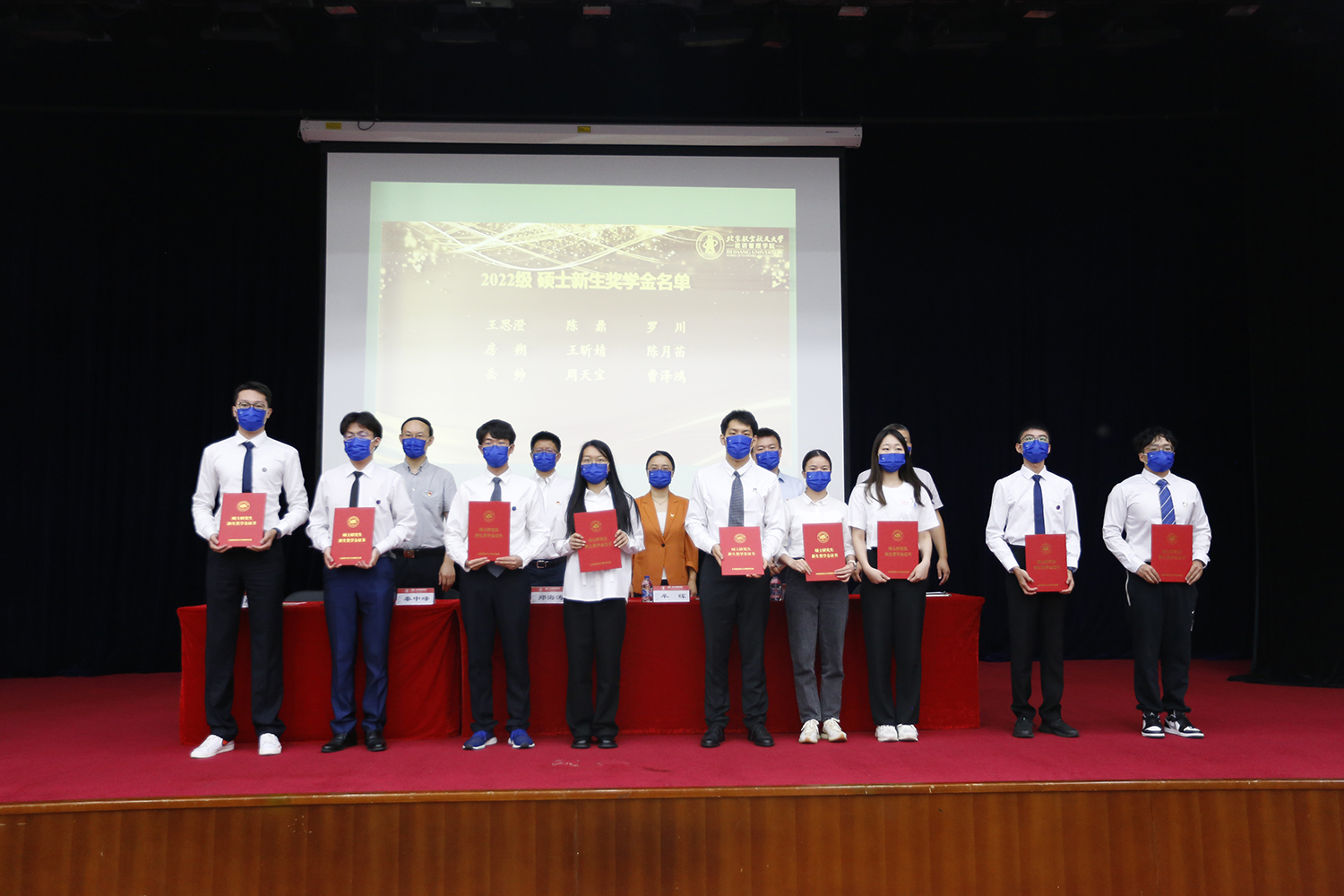 学院副院长牟晖副教授宣读2022级博士新生奖学金获奖名单,李健等四位同学获得博士新生奖学金,学院副院长秦中峰教授宣读2022级硕士新生奖学金获奖名单,曹泽鸿等九位同学获得硕士新生奖学金,与会老师为获奖者颁发了荣誉证书,鼓励在场研究生新生不忘初心,砥砺奋进。