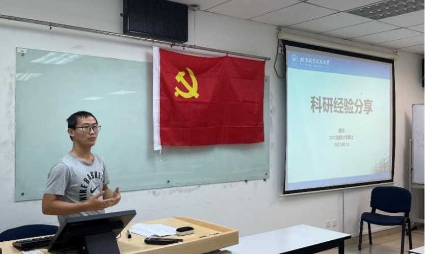 学习分享后,博士研究生支部的优秀党员们积极分享了自己的科研经验,希望为大家提供科研规划方面的启迪与帮助。BY1708党支部胡杰同志带领大家就阅读文献、实践交流、参加讲座三方面阐述找寻科研想法的途径,结合自己的科研体会,贴心为大家分享了自己常用的科研工具以及相应的使用注意事项。