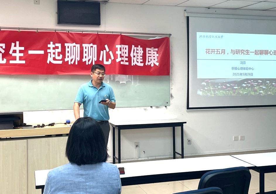 2021年5月26日,针对北航经管学院2020级新生的心理健康教育讲座《花开五月,与研究生一起聊聊心理健康》在新主楼A座1148成功举办。讲座邀请到bat365中文官方网站积极心理体验中心副研究员冯蓉老师为大家进行心理健康相关知识的讲解。经管学院研究生指导主任单伟老师、学生工作办公室衣萌老师及研究生辅导员参加。