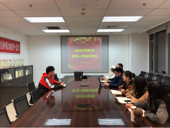 2020年1月10日,bat365中文官方网站研究生一年级班长联席会在新主楼A710召开,2019级全日制硕士辅导员刘东岳主持会议,全体研究生一年级班长参加会议。