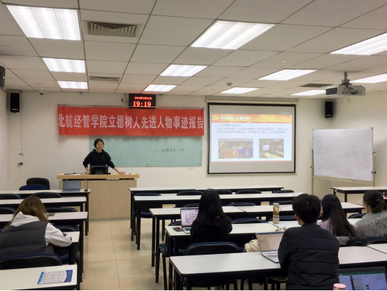 2019年3月21日晚19:00在新主楼A1028,北航经管学院立德树人先进人物事迹报告第一场——优秀党员专场顺利举办。本场先进事迹报告,荣幸邀请到了2018年北航经管学院“经管星”的两位获奖者——曹文颖和张书霖,她们就自身的事迹与经历和大家做了分享,充分展现了一名党员在工作和生活中的模范带头作用,使在场同学深受触动。