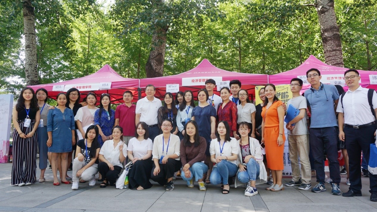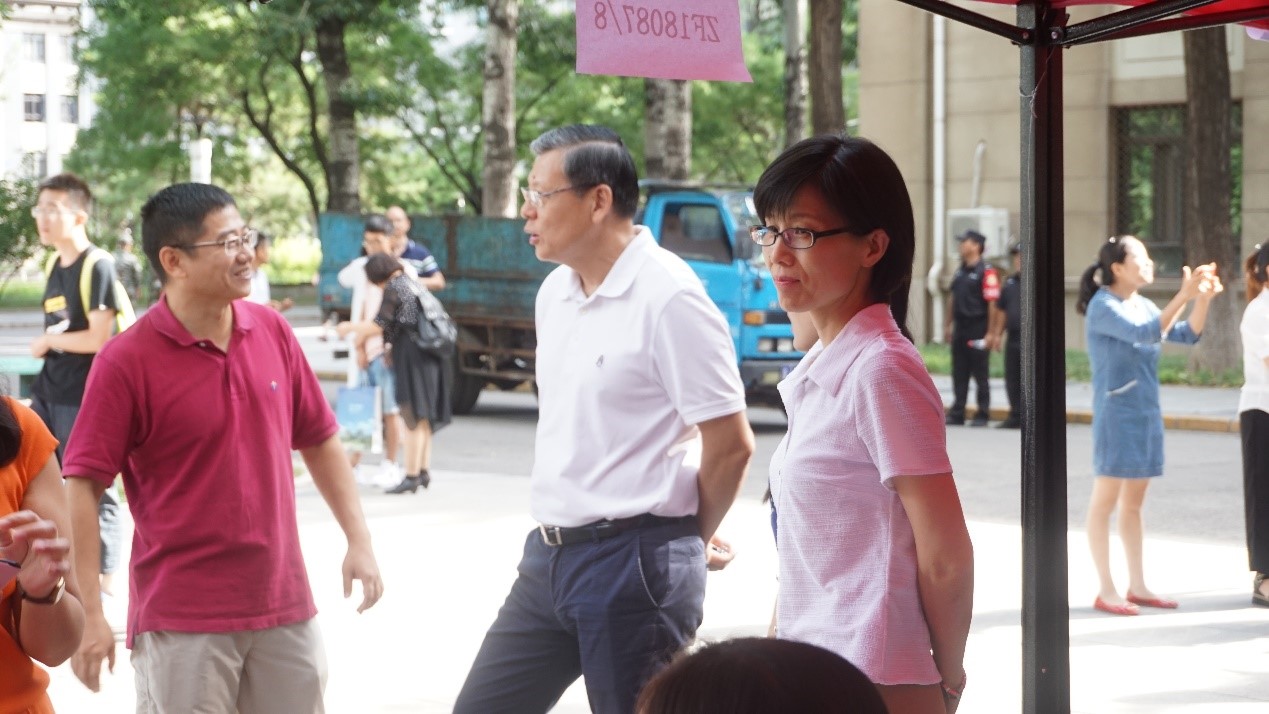 在火热的迎新现场,校领导和院领导纷纷前来慰问。校长徐惠彬、党委书记曹淑敏、副校长黄海军等校领导先后来到求是广场指导迎新工作,与前来报到的新生及家长热情交流、合影留念。经管学院院长范英教授、党委书记刘志新教授、副院长秦中峰教授、研究生指导主任单伟副教授、MBA中心主任田东文副教授、MPAcc中心主任白明副教授等也到场亲切慰问忙碌的志愿者们。