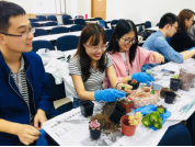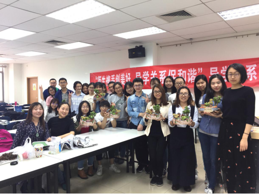 此次活动主要分为两个环节,在第一个环节中,同学们可以按照同门进行组队,在园艺师的指导下合作完成DIY多肉植物;第二个环节是将同门共同制作的多肉植物赠送给敬爱的导师,同时还可以写上自己对导师的祝福,从而表达对导师的情感,增进导师与同学们的亲密关系。本次活动共有28名学生报名参加。