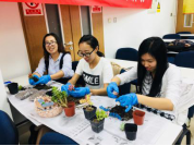 本次活动的第一个环节于2018年4月19日中午在新主楼A1028举行。首先,园艺师简单介绍了多肉植物的品种和种植方法,教同学们如何将每棵多肉植物进行换盆的预处理,即清理根部,并对同学们的操作给出了指导。接下来,同学们纷纷发挥各自的想象力,设计花盆中的多肉植物的位置摆放,并填上培养土,一盆多肉植物就大功告成了。最后,园艺师还讲了一些养多肉植物的方法,比如要放在阳光强烈的地方植物的颜色才会更漂亮等等。