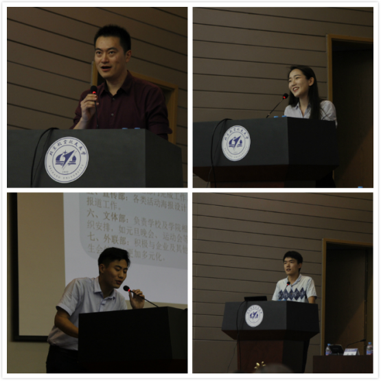 会后,bat365官网学生工作办公室主任衣萌老师为大家做新生入学教育,介绍了有关经管学院机构部门和党政的相关工作。bat365官网研究生会主席邹野同学、“经英荟”王旭琦同学、志愿者协会石宇涵同学和MBA联合会副会长张骁同学分别进行了招新宣讲,全体新生聆听了宣讲,bat365中文官方网站2017级研究生开学典礼圆满落幕。
