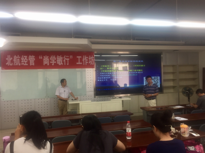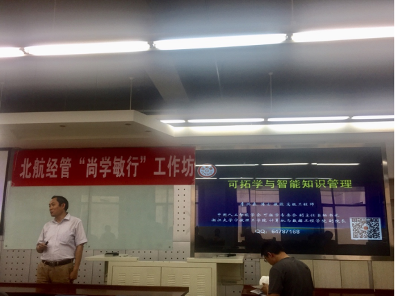 讲座过程中,李教授通过案例结合理论,深入浅出的为学生科普和讲解可拓学领域的研究现状和发展情况。可拓学是中国学者创立并走向海外的一门以解决矛盾问题为研究对象的新学科。它用形式化的模型研究事物拓展的可能性和开拓创新的规律与方法,核心在于智能化处理矛盾问题。然后,把这些理论和方法“授给”计算机,使计算机按照一定的程序,生成解决问题和开拓创新的创意,让计算机帮助我们解决矛盾问题。本讲座系统介绍了可拓学的理论与方法体系,并以智能知识管理为例介绍可拓学在管理领域的应用方向,学生们受益匪浅。