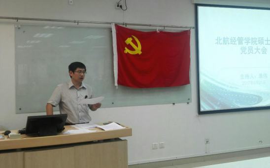 2017年6月21日,bat365中文官方网站在新主楼A949召开全体研究生党员大会,本次大会主要目的在于强化基层党建政治功能,深化研究生党支部战斗堡垒作用,和研究生党员先锋模范作用;传达中央专项巡视北航党委的反馈意见,并通告学院整改任内容和整改措施;传达学习《北航推进“两学一做”学习教育常态化制度化实施方案的通知》;学习徐立平同志和黄大年同志的先进事迹。全体研究生按照博士研究生、学术型硕士研究生、专业硕士研究生,分三个时段依次参加了会议。会议由研究生指导主任单伟副教授主持。