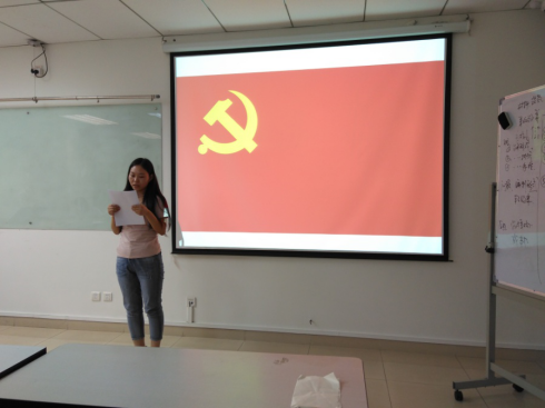 发展大会第一项,全体党员唱国际歌。之后,积极分子刘浩、王海英同志宣读志愿书,汇报了自己在考察期间的表现,表明了自己的入党志愿。刘浩同志和王海英同志的入党介绍人对两位同志的情况进行了介绍,并肯定了其在考察期的表现。通过支部全体正式党员讨论、表决等合法程序,全票通过“关于接收刘浩、王海英同志为预备党员的决议”,刘浩、王海英同志成为中共预备党员。会议最后,支部书记袁石对刘浩、王海英同志提出了要求,希望他们在以后的学习和生活中能够更加严格要求自己,与支部正式党员交流,不断提升理论水平,发挥党员的模范带头作用。至此,本次发展大会圆满结束。