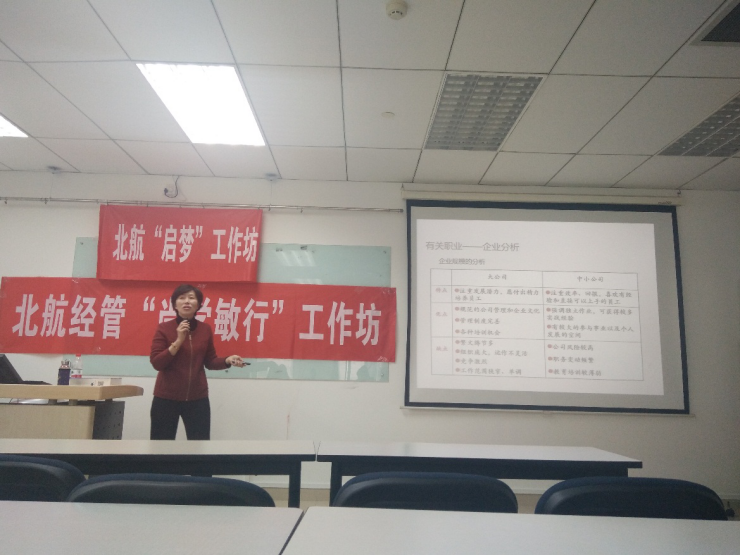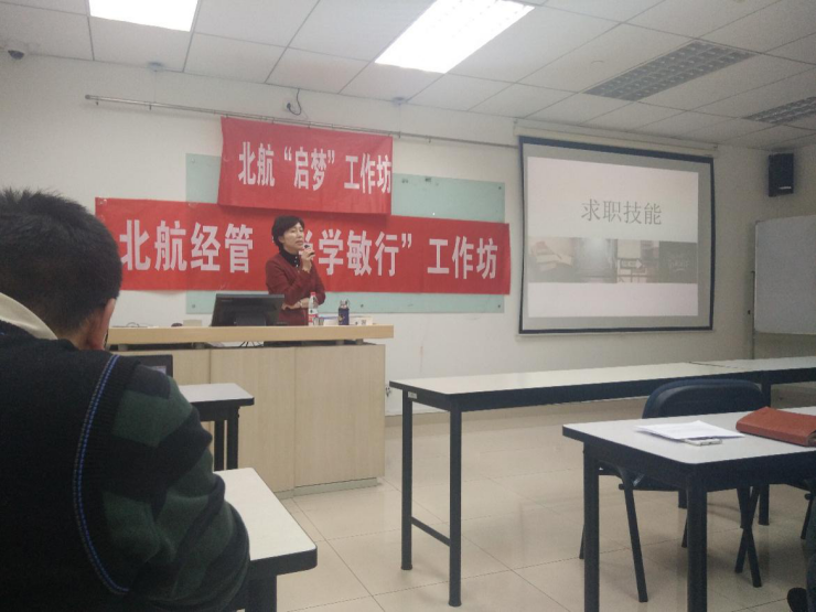 4月20日下午三点,由北航“启梦”工作坊、北航经管“尚学敏行”工作坊联合主办经管学院职业发展中心承办的“求职和面试技巧”讲座在新主楼A座1028成功举办。讲座邀请到前北京青云航空仪表有限公司人力资源部部长张进老师为大家进行求职技巧分享,并邀请到党委副书记王喜忠老师,研究生工作办公室衣萌老师到场参会。