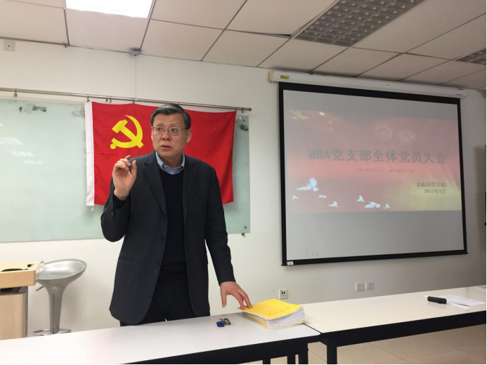 为了让MBA党员更好的进行组织生活,更积极的参加支部活动。经管学院根据MBA党员的自身特点,于2017年4月8日周六,在新主楼A1148特别召开了MBA党支部全体党员大会。出席本次会议的有经管学院党委书记刘志新教授,MBA中心王兵老师、王明媚老师,研究生工作办公室张慧美老师,以及MBA全体党员。此次会议由研究生指导主任单伟副教授主持。