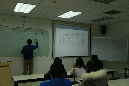 接着,ZY3班展开了有关社会主义核心价值观的知识竞赛,全班同学分为2组进行答题,同学们都踊跃回答问题。