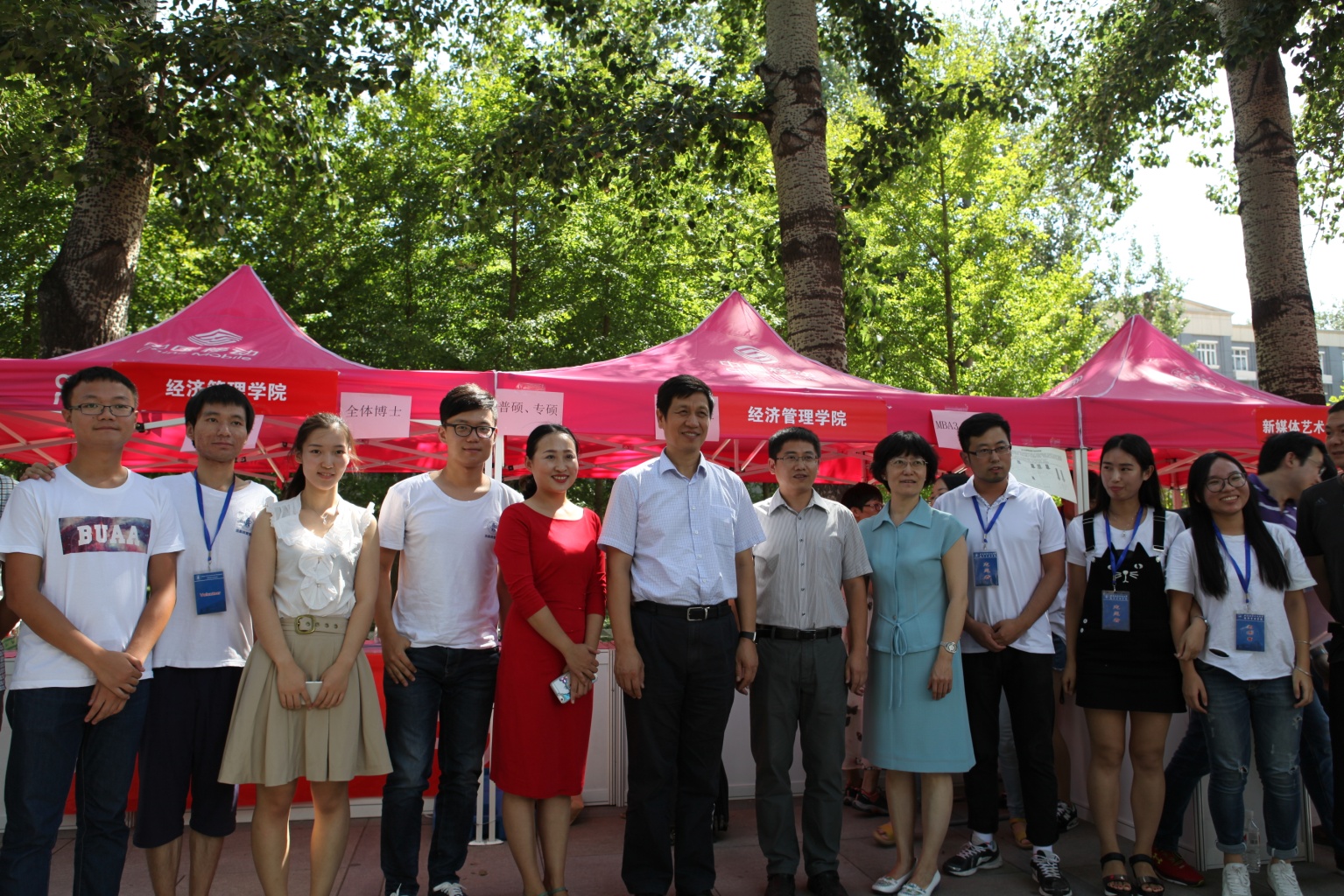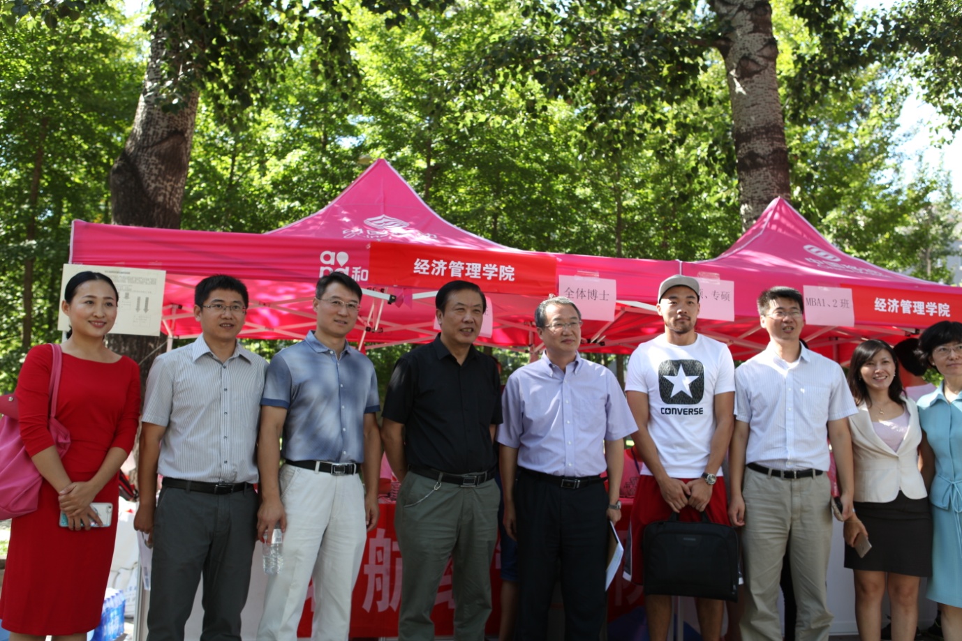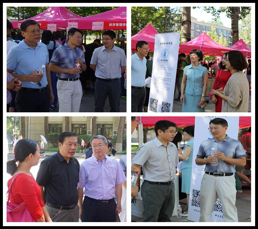 在火热的迎新现场,校领导和院领导纷纷前来慰问。校长徐惠彬院士、党委常务副书记张维维、党委副书记程基伟、副校长房建成院士、副校长黄海军、校长助理李军峰、研究生工作部部长王文文、副部长宋晓东等学校领导老师相继来到经管学院与新生面对面交流;经管学院党委书记刘志新、副院长张人千、副院长牟晖、研究生指导主任单伟、MBA中心主任田东文等学院领导老师也到场亲切慰问忙碌的志愿者们。